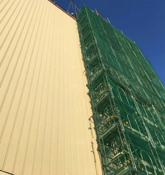 「足場」には、建物や設置場所によって様々な種類があります。一般住宅用にはは「単管足場」、ビル改修工事では「枠組足場」が使われており、その他にも「くさび式足場」「次世代足場」などがあります。弊社では、現場に合わせ、最適な環境を組み上げます。また、高所作業で危険も多いため事故が起こらないよう、細心の注意を払いながら作業を進めています。完成後には残ることのない足場工事ですが、工事全般の安全を守る重要な工事です。